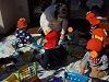 ひよこ組と紅組のお友達はテラスでおままごとで遊びました。保育者と友達と「どうぞ」「ありがとう」などやりとりしながら、食べ物を食べる真似をしたりして楽しそうに遊んでいました。