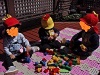 お天気が良かったので、テラスで遊びました。絵が描いてあるブロックを繋げたり、男の子と女の子の人形を乗せて電車を走らせて楽しんでいました。出来上がったのを見せていました。