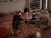 今日はお部屋でゆっくりおままごと遊びをしました。大きなぬいぐるみを相手にご飯を作ったり、保育者に食べさせてくれたりとかわいいお母さんになっていました。