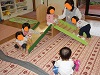 今日は、皆で室内遊びをしました。滑り台を出して順番に滑りました。何回も滑るうちに順番に並んで階段を登っていました。楽しかったようで、階段を上ったところで手を振っていました。