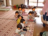 「おおきなたいこ」のピアノの音を聞きながらタンバリンとカスタネットを打ちました。保育者の手本を見ながら音の強弱をつけて、楽しそうに取り組んでいました。