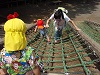 今日は白山公園にお散歩に行って来ました。ロープの網を登ってみると、先に登った黄組さんが、頑張って登っている赤組さんを応援してくれました。登り切った後は皆ニコニコ。また元気に走り出して池の周りを探索して帰って来ました。