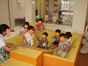 今日は室内で運動遊びをしました。跳び箱の山登りや滑り台など保育者と一緒にやってみました。滑り台をすべってサークルのボールプールへドボンとすべり下りるのが面白くて足でボールを蹴飛ばしたり投げたりして楽しんでいました。