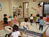 雨天で大好きな外遊びが出来なかったので室内で体操をしたり、滑り台遊びをして過ごしました。保育者の振りを摸倣しながら身体を動かして楽しんでいました。