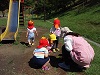 三ツ目山公園で遊びました。テントウムシを発見!「あっ」「むし」と言いながら指差して友だちと座り込んで目で追いかけて喜んでいました。