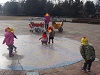白山公園のステージ広場前で遊びました。保育者と友だちと一緒に追いかけっこをして元気に駆け回ったり、ドングリを探して拾い集めて遊びました。
