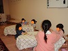 鬼のお面の制作をしました。画用紙にクレヨンでお絵描きをしたり、目や鼻、口など糊で付けて仕上げました。「ペタンペタン」と言いながら楽しそうに取り組んでいました。