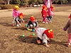 公園でボール遊びをしました。ボールを投げては、追いかけてと繰返したり、袋の中にいれるのを競い合ったりしながら元気に遊んでいました。