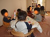 窓制作で「雪だるま」を行いました。保育者の話を聞いて帽子や手袋、顔をパーツなどペタペタと楽しそうに作業を取り組んでいました。完成した作品を手に持って嬉しそうに「みてみて」「できた」と教えてくれました。