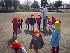 公園で「オオカミと7匹の子ヤギ」の鬼ごっこ遊びをしました。保育者がオオカミの役になり子ども達は子ヤギ役で歌に合わせて踊り、「やさしいこえでただいま」のかけ声で子ども達は逃げて、保育者が追いかけていきます。「きゃぁー」と言いながら楽しそうに駆け回っていました。