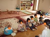 「カエルのうた」のピアノの曲に合わせてタンバリンでリズム打ちをしました。保育者の手本を見ながらタンバリンを叩いたり、お休みの所は、両手を胸で合わせておやすみをしながら楽しんで取り組んでいました。0歳児のお友だちも手と足をピョコピョコと動かしながら笑って喜んでいました。