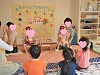 今日は、7月生まれのお友だちのお誕生会をお祝いをしました。おたんじょうびおめでとうございます。誕生日のお友だちは、みんなの前に座ると少し緊張してしまいもじもじしていましたが頑張っていました。職員の出し物でジャンボシアター「いこういこうなつのおでかけ」を見て喜んでいました。