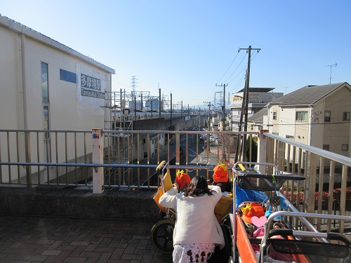 多摩境駅へ電車やバスを見に行ってから、白山公園でボール遊びをしました。