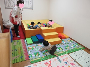 室内で遊びました。滑り台やボールプールでたくさん身体を動かし、元気いっぱい遊びました。