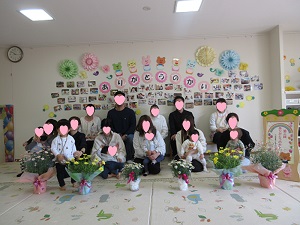 先日28日に「ありがとうの会」を行いました。保護者の方と一緒にお子様の成長を振り返りお祝いしました。1部はひよこ組のお友だちでした。園長先生から修了証書をもらうとにっこり嬉しそうでした。